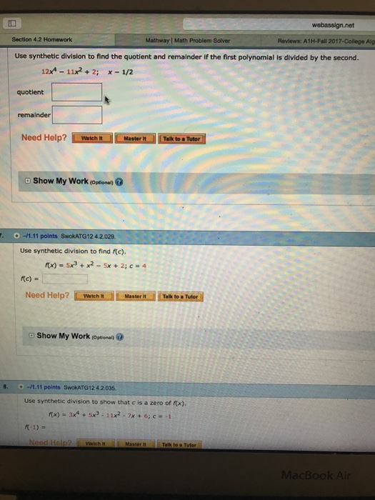 College Algebra How Do I Use Synthetic Division In A Given Function I Tried Mathway And Watched Videos But I Can T Figure It Out For The Life Of Me Homeworkhelp