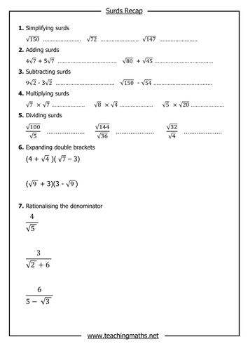 Surds Worksheets Teaching Resources